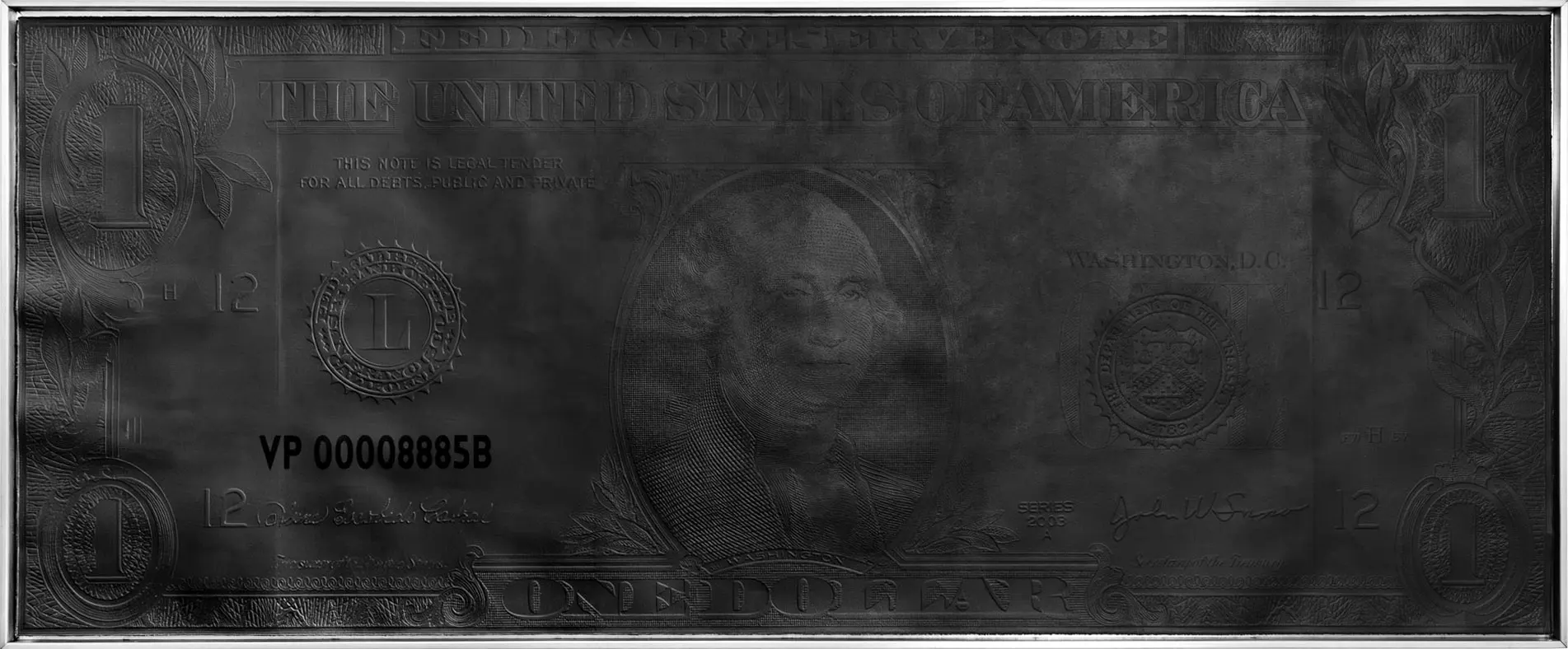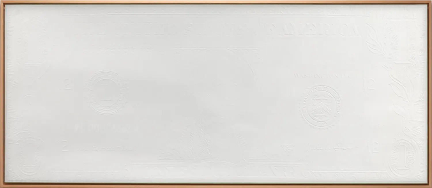 This work invites a deep dialogue about perception and trust in the monetary system, suggesting that our concept of wealth and power may ultimately be a constructed illusion. White, a symbol of purity and light, becomes a reflector of our complex relationship with currency, prompting us to explore the connections between the tangible and the ephemeral, the real and the artificial.