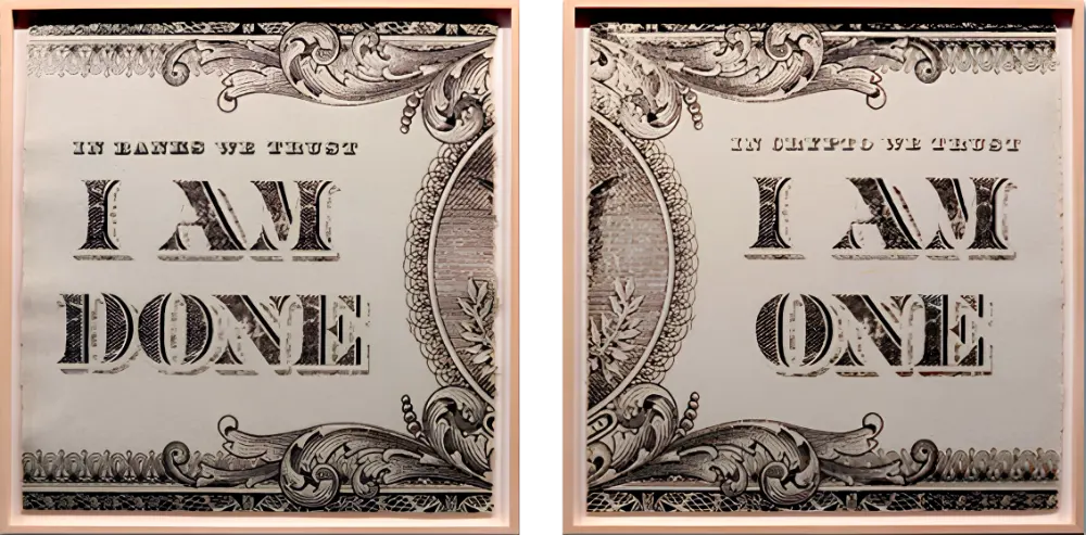 Through this representation of a dollar dissolving into white, the project invites critical reflection on the transitory nature of wealth and the need to reconsider our relationship with money. The work raises questions about the foundations of our financial system, underscoring the need for a more equitable and sustainable vision of economic and social value.